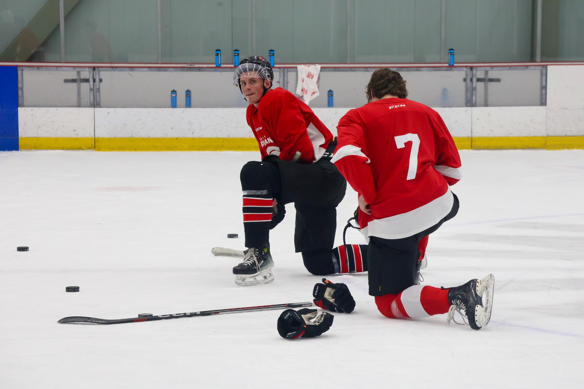The team stores their gear at the WinSport facility. "We're still able to keep our equipment at the rink... So, it's not like guys are having to lug their gear all the way home,” said Zach Cain, Trojans team captain.